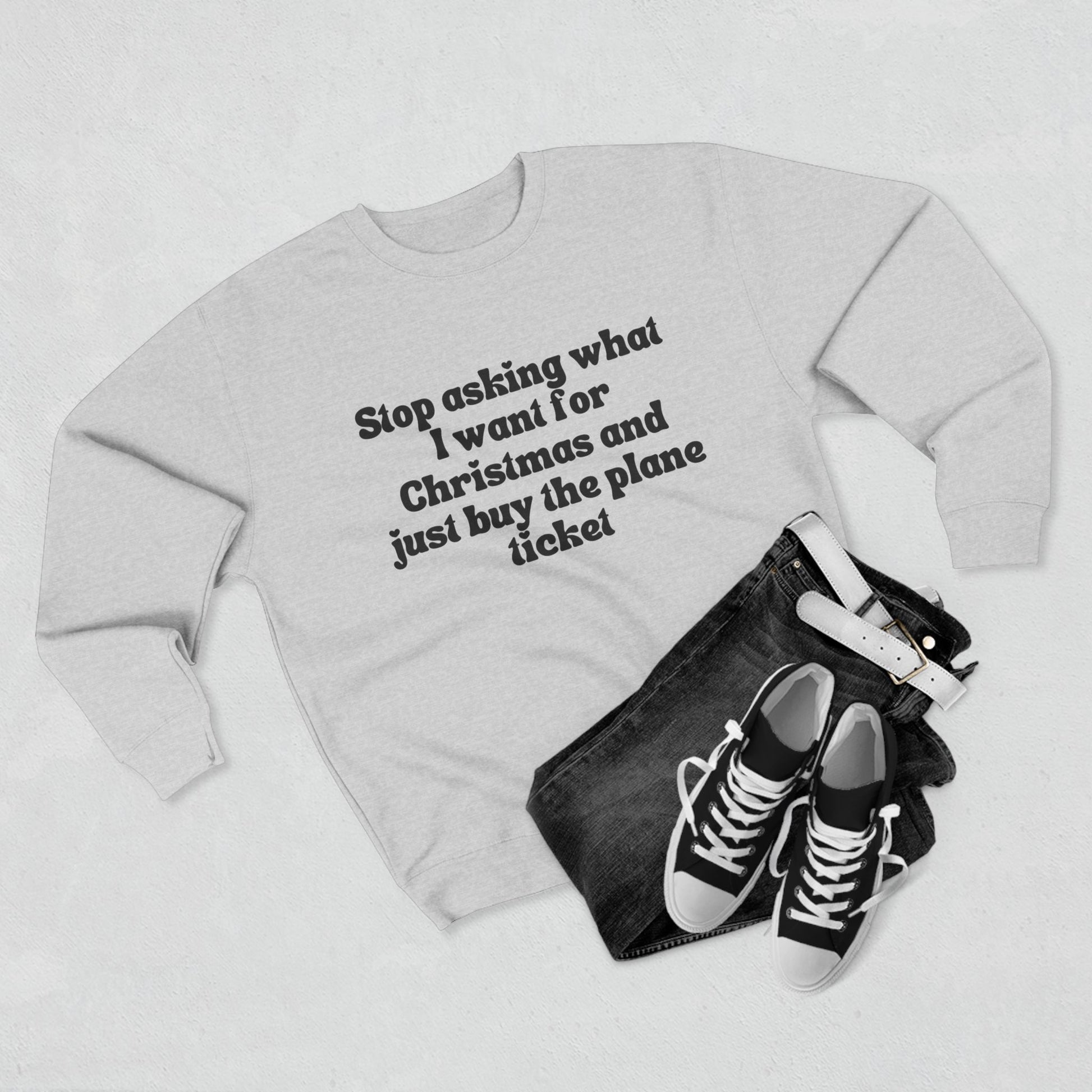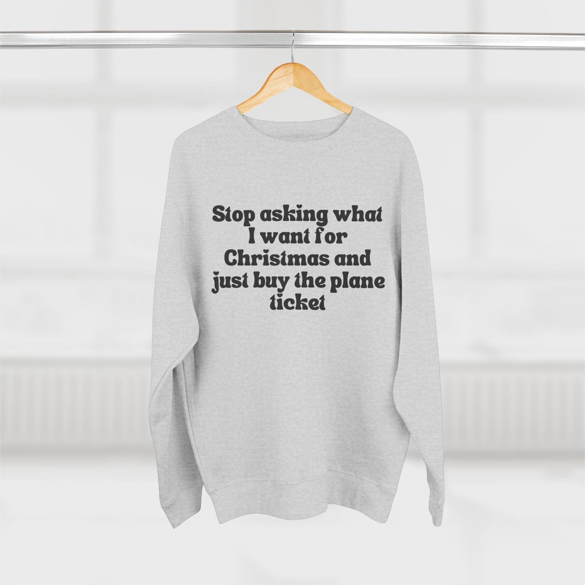 Give your holiday hint loud and clear with our “Buy the Ticket” Sweatshirt — the perfect blend of cozy comfort, festive personality, and effortless style. Whether you're dreaming of a winter getaway or a jolly beachfront celebration, if you're simply tired of repeating your wish list, this sweatshirt says it all for you.